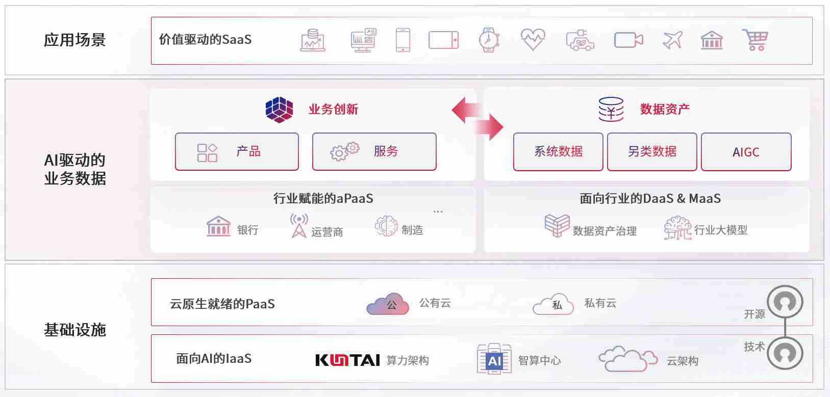 数字时代,,,,围绕企业数字化转型的关键要素,,,365钱包数码开创性的提出数云融合战略和技术体系框架,,着力在云原生、、数字原生、、、、AI原生和信创产业上架构产品和服务能力,,,,为处在不同数字化转型阶段的快消零售、、、汽车、、、、金融、、、医疗、、政企、、、教育、、运营商等行业客户提供泛在的敏捷IT能力和融合的数据驱动能力,,,,构建跨界融合创新的数字业务场景和新业务模式,,,助力企业级客户建立面向未来的核心能力和竞争优势,,全面推动社会的数字化、、、、智能化转型升级。。。