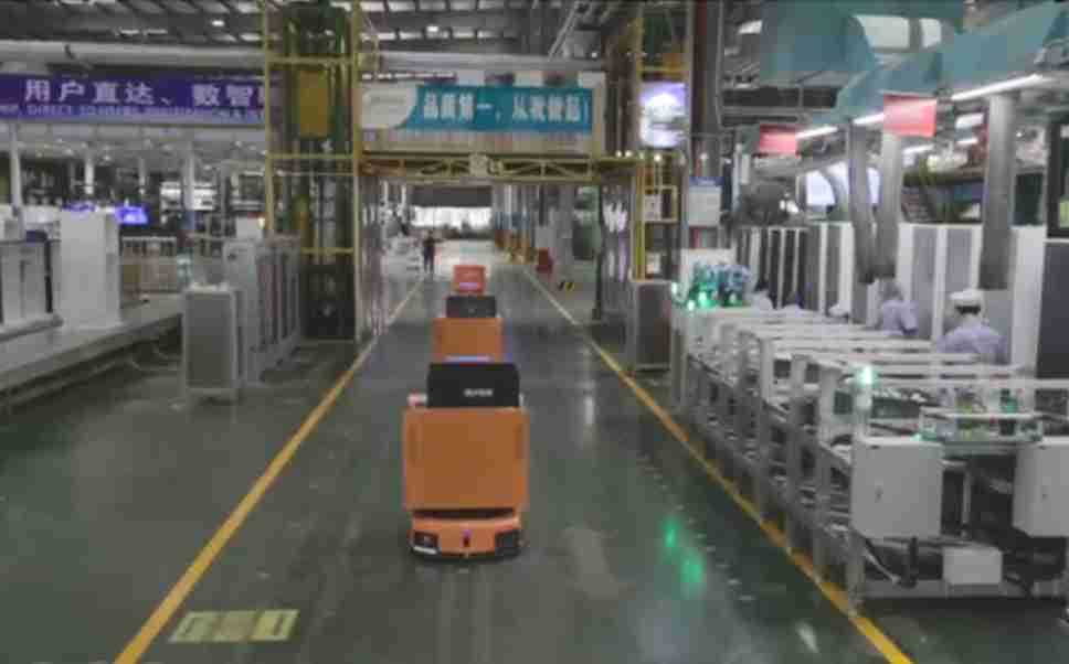为车载冰箱物流配送打造的智能解决方案,,包含产中物流通过潜伏举升AMR搬运至线边,,,产后成品物流智能仓储,,,流程包含产中物流智能齐套入库,,线边安灯叫料AMR智能配送至线边,,,成品入库、、、、出库,,,,通过无人堆高车机器人,,,,智能仓储管理替代人工作业管理,,实现更高存储、、、、更高效率、、、更具柔性化的解决方案。。